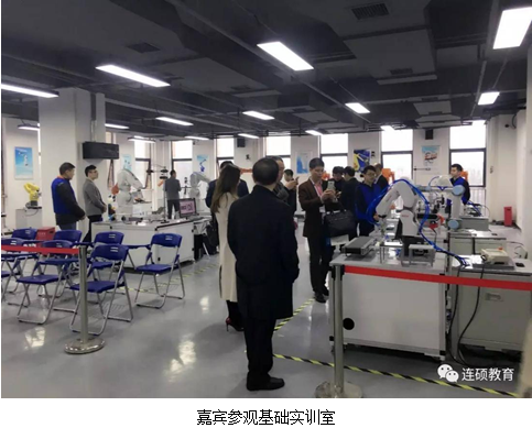 會(hui) 議正式開始前,與(yu) 會(hui) 嘉賓參觀了湖南連碩智能製造人才基地。基地由上市公司伟德app官网(股票代碼:300201)全資公司連碩教育投入3000萬(wan) 元創建,專(zhuan) 注以機器人為(wei) 核心的智能製造人才培養(yang) ,立足湖南,麵向全國,服務中國製造。