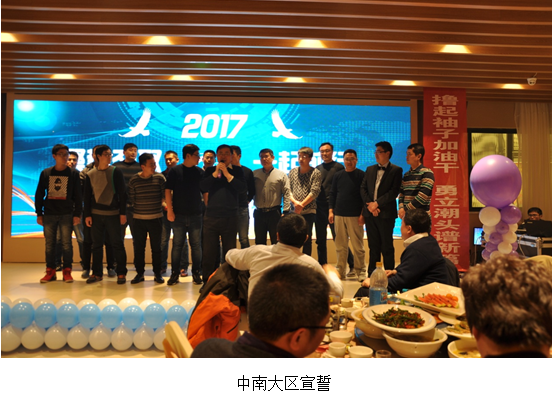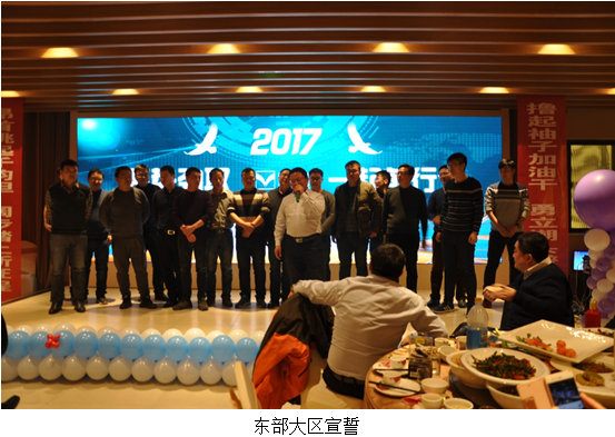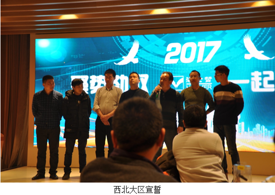 大浪淘沙,始見真金璀璨;跨越巔峰,方顯英雄本色!聚勢勁取讓我們(men) 曆練成功,大區爭(zheng) 霸讓我們(men) 騰飛夢想!在酒會(hui) 現場,四個(ge) 大區進行多番打擂並對2017年目標進行宣誓。