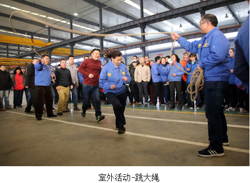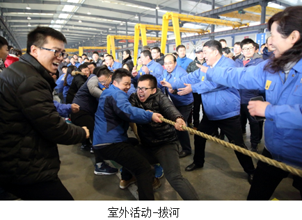 “室外活動”歡聲雷動。參賽隊伍由科研分工會(hui) 、管理分工會(hui) 、生產(chan) 分工會(hui) 、營銷分工會(hui) 及鋼結構工會(hui) 組成,競爭(zheng) 激烈的拔河比賽、團結齊心的跳大繩及配合默契的傳(chuan) 送呼啦圈無不彰顯出伟德app官网員工的風采。本屆拔河比賽對陣激烈,隻見生產(chan) 分工會(hui) 的同事們(men) 臉繃得緊緊的牢握繩子拚命往後拉,腳下猶如釘扣牢牢抓住地麵,“加油,一、二”,“加油,一、二”……在一片歡呼雀躍中獲得本屆冠軍(jun) 。