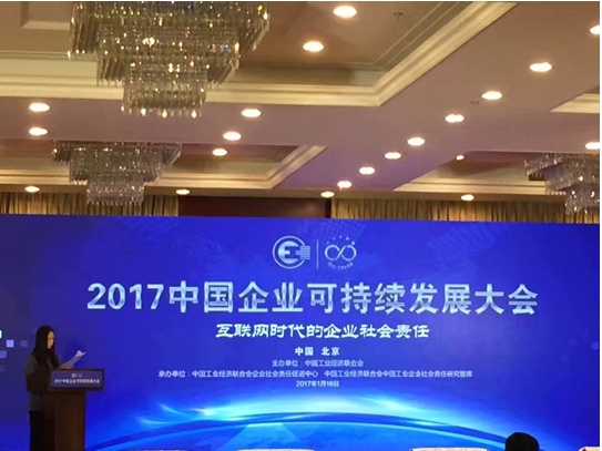 2017中國企業(ye) 可持續發展大會(hui) 於(yu) 2017年1月18日在北京召開,本次會(hui) 議以“互聯網時代的企業(ye) 社會(hui) 責任”為(wei) 主題,通過專(zhuan) 題報告、戰略合作項目、多方研討、經驗和案例分享,探尋實體(ti) 經濟振興(xing) 和中國企業(ye) 可持續發展解決(jue) 之道。中國工業(ye) 經濟聯合會(hui) 會(hui) 長李毅中、執行副會(hui) 長路耀華、執行副會(hui) 長兼秘書(shu) 長熊夢等出席了會(hui) 議。
