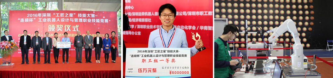 11月27日,2016年深圳“工匠之星”技能大賽---“連碩杯”工業(ye) 機器人設計與(yu) 管理職業(ye) 技能競賽在深圳大學落下帷幕,首個(ge) 工業(ye) 機器人專(zhuan) 項“工匠之星”產(chan) 生。本次大賽由深圳市人力資源與(yu) 社會(hui) 保障局主辦,深圳市連碩機器人職業(ye) 培訓中心承辦。