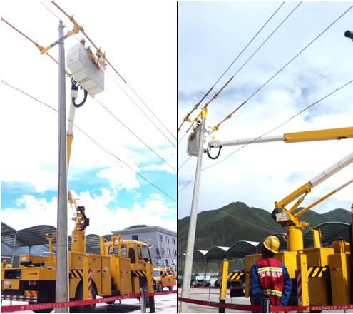 據了解,在三四千米的高海拔地區,對不停電作業(ye) 在專(zhuan) 業(ye) 性和安全性方麵的要求更高,重點要掌握高海拔地區配網帶電作業(ye) 短間隙的海拔修正方法和帶電作業(ye) 間隙的絕緣配合方法。為(wei) 保證此次帶電作業(ye) 的順利進行,我司已對拉薩所使用的車輛按海拔4500m進行相關(guan) 指標的修正,修正係數高達1.54,工頻耐壓及泄漏電流均符合高海拔帶電作業(ye) 要求;該車的有效絕緣長度由1m改為(wei) 1.2m。在不伸臂進行10kV帶電作業(ye) 的前提下,本車主絕緣預伸段已超過1.2m,極大限度的保障作業(ye) 安全。此外,我司相關(guan) 技術服務人員多次到拉薩與(yu) 首次進行帶電作業(ye) 的班組進行實操交流,對作業(ye) 車輛進行現場保障。最終作業(ye) 人員克服高原特殊地理氣候給配網帶電作業(ye) 帶來的影響,順利完成所有操作。