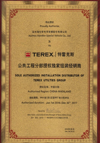 2016年2月20日,全球機械和工業(ye) 產(chan) 品行業(ye) 解決(jue) 方案的領導者TEREX與(yu) 韦德网站官方入口建立唯一的中國大陸區域戰略合作夥(huo) 伴關(guan) 係,伟德app官网全權負責TEREX高空作業(ye) 車原裝進口絕緣上裝全線產(chan) 品在中國大陸的組裝製造、營銷和技術服務工作。